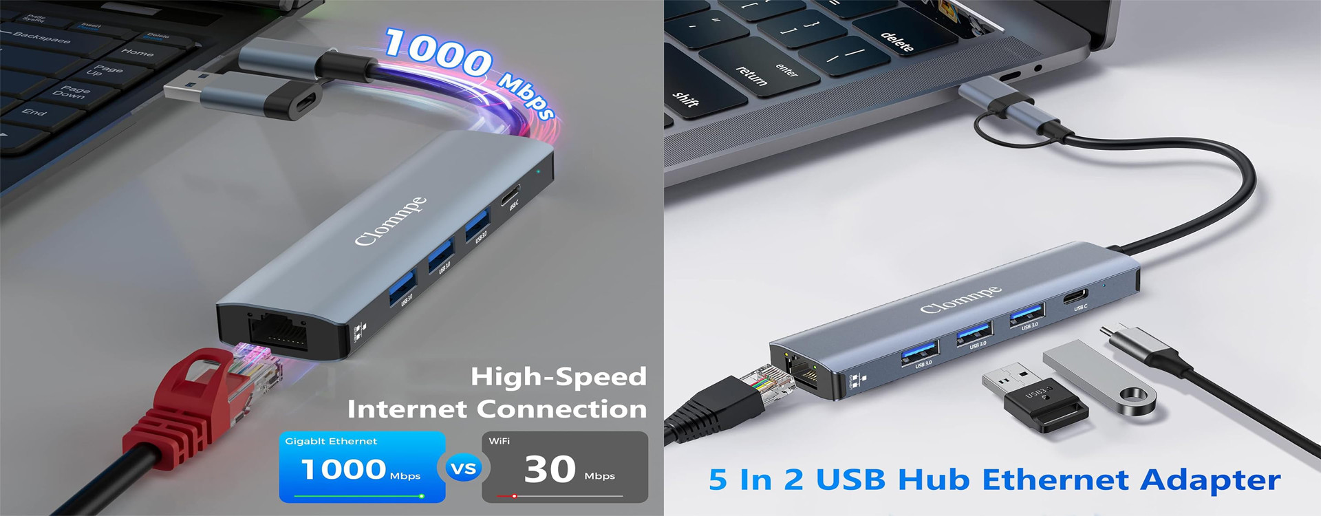 5 In 2 USB C Hub Ethernet 1000M, USB to Ethernet Adapter